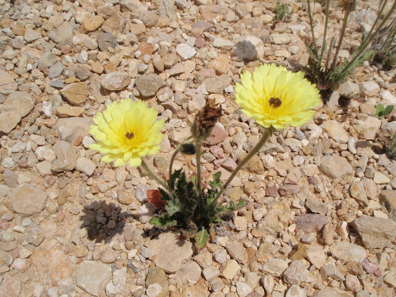 -Flores de color amarillo o anaranjado, con a menudo una banda dorsal rojiza, con uno o dos tallos florales, liguladas y zigomorfas. Florece de abril a junio.